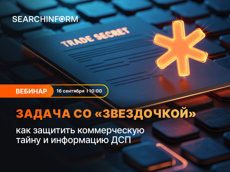 16 сентября в 10:00 состоится вебинар «Как защитить коммерческую тайну и информацию ДСП». Заместитель генерального директора по инновационной деятельности «СёрчИнформ» Алексей Парфентьев и GR-специалист «СёрчИнформ» Дмитрий Вощуков расскажут, как эффективно организовать защиту чувствительных данных, как правильно оформить режим коммерческой тайны и сделать так, чтобы он реально защищал бизнес.